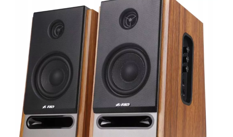 Producent, tak jak w przypadku modelu R25BT, postawił na obudowę wykonaną z płyty MDF, pokrytą okleiną imitującą drewno. Głośniki są konstrukcją bass reflex, który został umieszczony z przodu, co ułatwia ustawienie kolumn na biurku. Na prawym głośniku z boku znajduje się panel sterowania: można dostosować poziom głośności, wysokie tony, niskie tony. Pod nimi umieszczono jeszcze pięć przycisków: włącz/wyłącz, źródło, następny utwór, poprzedni utwór oraz odtwórz/pauza.