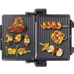 - funkcję odprowadzania tłuszczu: w wybranym modelu między płytami znajdują się specjalnie wyprofilowane rowki, które ułatwiają spływanie tłuszczu, ale także zapobiegają jego nawarstwianiu się i przypalaniu. Dlatego możesz skuteczniej zadbać o czystość Twojego grilla i masz gwarancję lepszego smaku grillowanych potraw