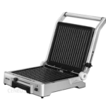 Jeśli chodzi o zabezpieczenia dla użytkownika, praktyczną opcją jest podświetlenie w momencie, kiedy urządzenie jest podłączone do prądu oraz nienagrzewająca się rączka do otwierania górnej pokrywy grilla, która eliminuje ryzyko związane z oparzeniem.