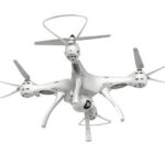 W opakowaniu znajdziesz rzecz jasna drona – jest on dostępny tylko i wyłącznie w eleganckiej, białej kolorystyce z nadajnikiem 2.4 GHz 4CH. Kolejną rzeczą, która znajduje się w pudełku to osłony śmigieł, mające za zadanie chronić sprzęt w czasie lotu oraz lądowania. Dzięki nim nawet przy kontakcie ze ścianą, Twój dron pozostanie w 100% sprawny. Producent do drona dołączył również cztery zapasowe śmigła, akumulator o pojemności 2000Mah, jest on bardzo ważny, ponieważ to właśnie dzięki niemu lot dronem trwa aż 9 minut. Reszta rzeczy to kamera Wi-Fi, klips na telefon, śrubokręt, ładowarka i oczywiście instrukcja obsługi.